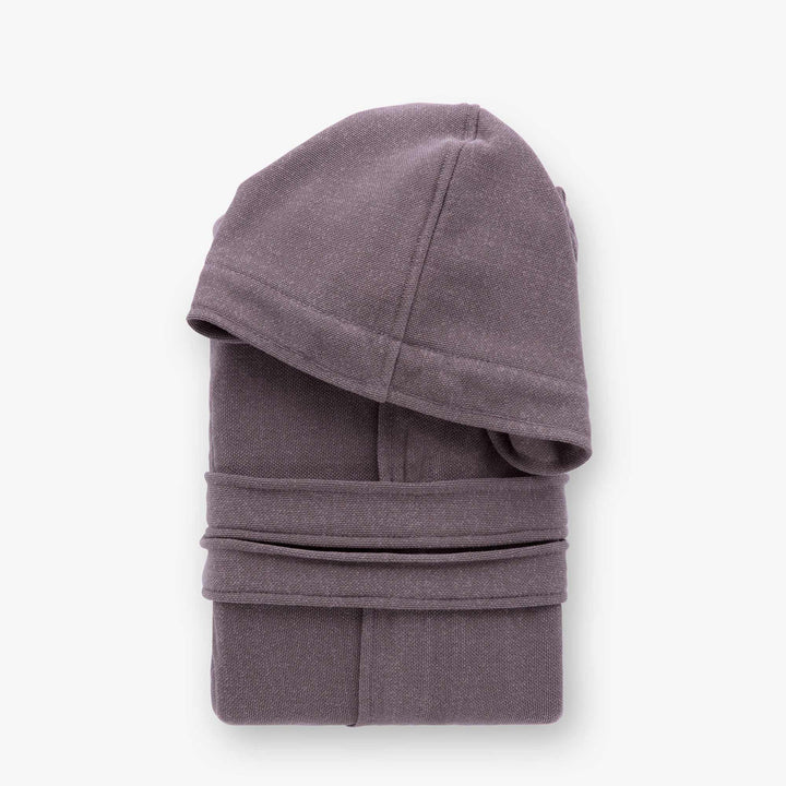 Accappatoio con cappuccio, lavorazione a maglia con morbida microspugna all'interno.