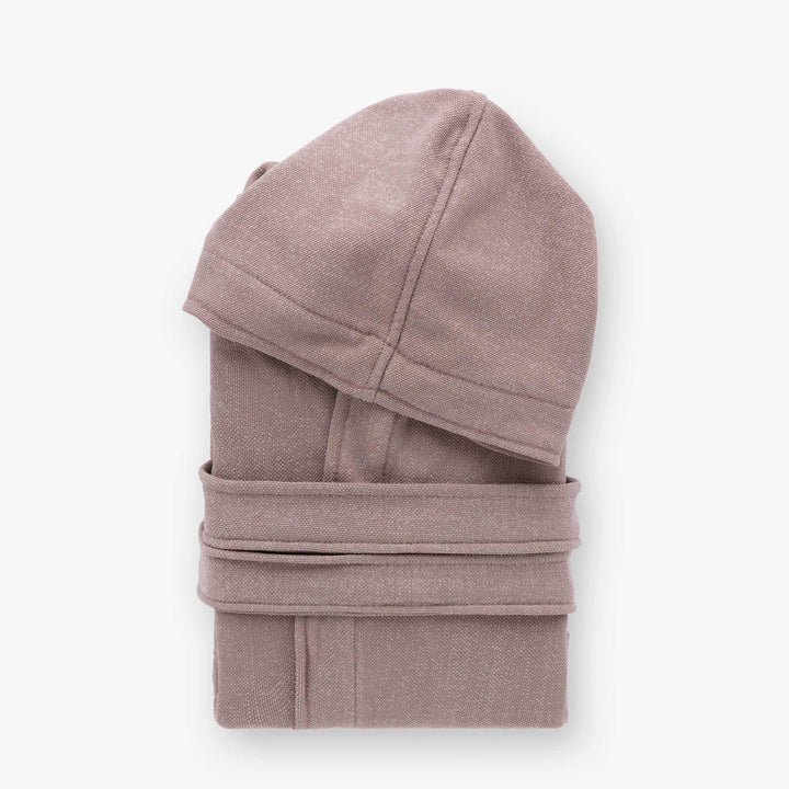 Accappatoio con cappuccio, lavorazione a maglia con morbida microspugna all'interno.