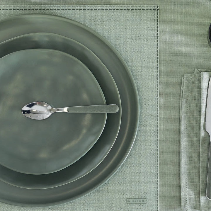 Ogni piatto presenta piccole differenze e imperfezioni che ne provano la manifattura artigianale e l'unicità; i bordi dei piatti hanno una finitura opaca lungo il bordo, per uno stile contemporaneo dall'effetto caldo e grezzo.