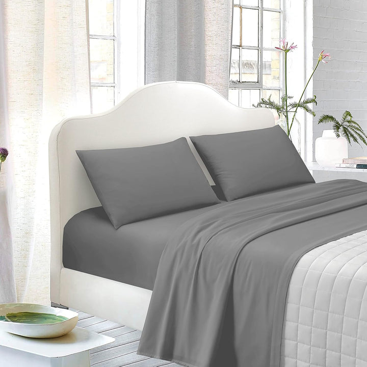 TESS Completo Letto Matrimoniale 100% Cotone, Colore Grigio Tinta Unita, Completo Lenzuola Matrimoniali 170x195 cm Composto da Lenzuolo sotto, sopra e 2 Federe